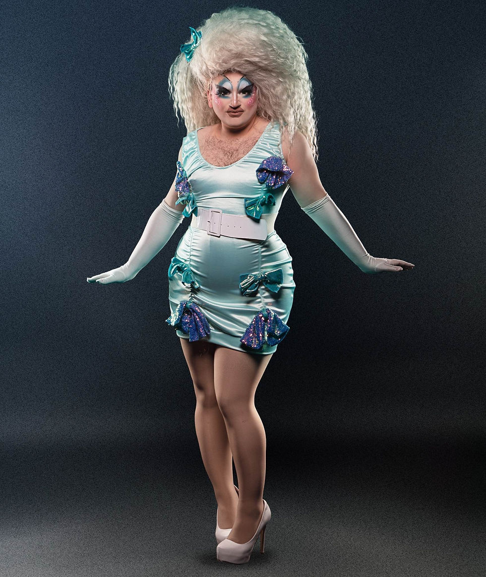 It usually takes me a good hour and a half to get into everything, including makeup, pads, tights, and outfits! The fastest time I got into full drag was when I got off work at 9:30PM and the show started at 10:30PM! Luckily I worked close to the bar at the time but it was a race against the clock for sure, somehow I managed to even finish before some of the other performers!