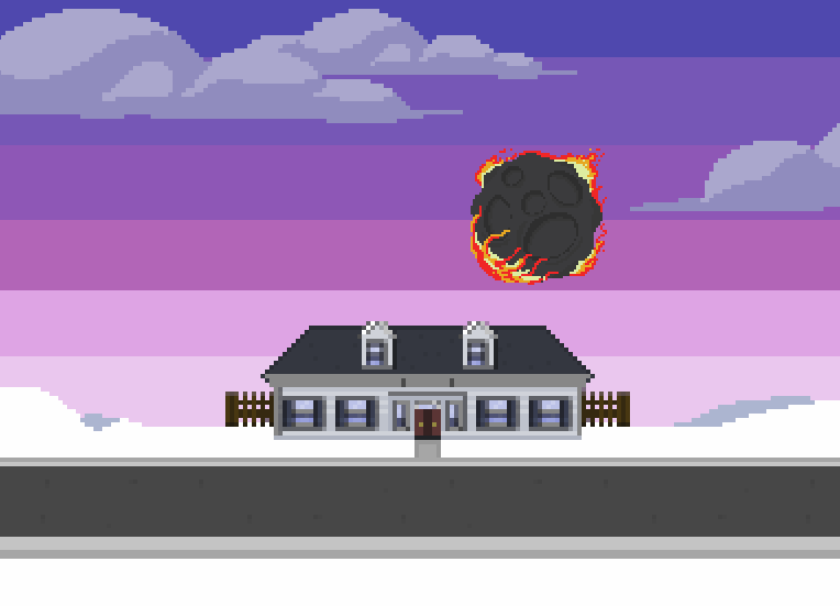 My role in making the game was creating most of the art, specifically the floors, walls, and the furniture. I also made the sky behind the house and the meteor and even animated the flames on it. I used a program called PyxelEdit to make 32x32 pixel tiles that Tyler could piece together in the game. A couch for example is 2 tiles wide or tall depending on the perspective. I also made the song that plays and some of the sound effects.