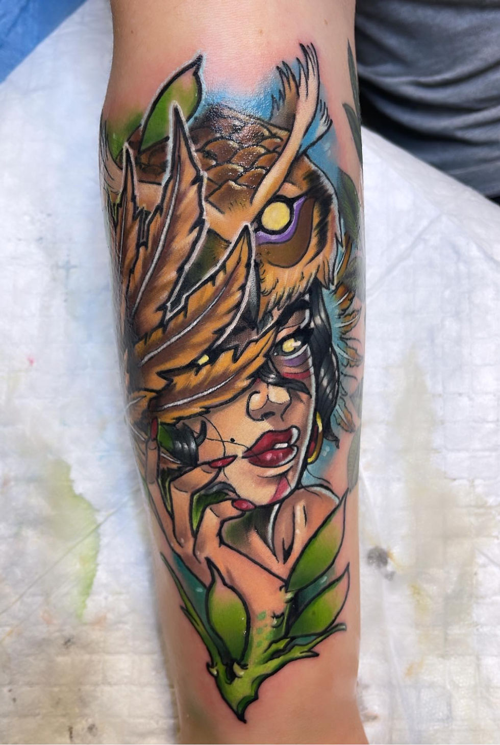 I absolutely prefer color, but I do enjoy black and gray tattoos occasionally depending on the subject matter. I just personally feel like with my artwork I can bring the piece to life more using color. I can add tons of color elements and color theory elements that would make the piece stand out and I don't feel like I can do that with black and gray styles.